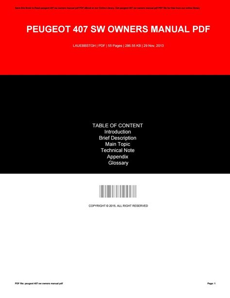 FYK - Download USER MANUAL PEUGEOT 407 SW Nook Gutenberg